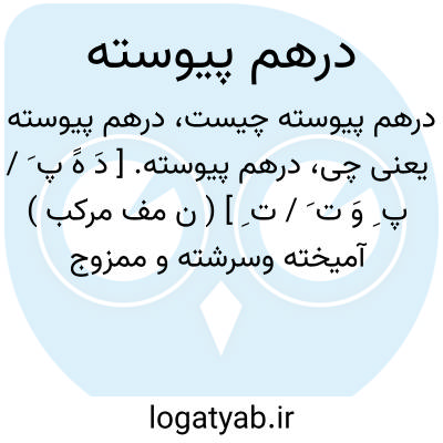 درهم پیوسته. [ دَ هََ پ َ / پ ِ وَ ت َ / ت ِ ] ( ن مف مرکب ) آمیخته وسرشته و ممزوج شده. ( ناظم الاطباء ). مُلَساس. مُلَملَم. مَلموم. ( منتهی الارب ). || حصیربافی شده. ( ناظم الاطباء ).
