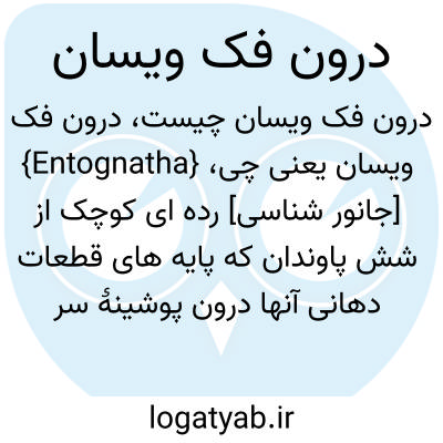 {Entognatha} [جانور شناسی] رده ای کوچک از شش پاوندان که پایه های قطعات دهانی آنها درون پوشینۀ سر قرار دارد؛ اعضای این رده حشراتی بی بال و کوچک و فاقد چشم هستند که در زیستگاه های خاکی و تاریک یافت می شوند