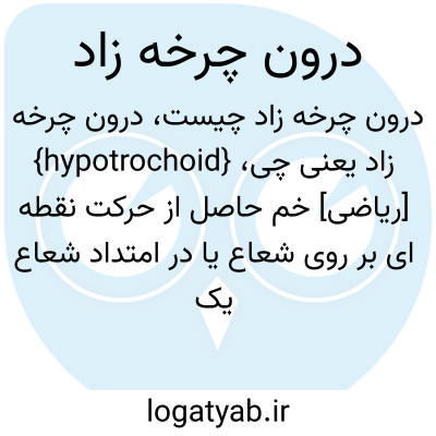 {hypotrochoid} [ریاضی] خم حاصل از حرکت نقطه ای بر روی شعاع یا در امتداد شعاع یک دایره به جز مرکز آن، وقتی آن دایره در درون دایرۀ ثابتی بدون لغزش و مماس بر آن بغلتد