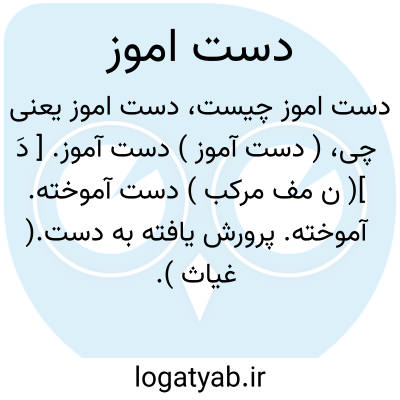 می باید از آه رشته ای بر پایش.ظهوری ( از آنندراج ).|| سگ و گربه اهلی که گیرنده نباشند. ( لغت محلی شوشتر، نسخه خطی ). || حاذق و کارآزموده و قابل و کارگر لایق. ( ناظم الاطباء ). || جانوری که با آن بر روی دست بازی کنند. ( لغت محلی شوشتر، نسخه خطی ). || کنایه از مخالفین مذهب که در دین خود تعصب نداشته باشند و به لهجه شوشتر دس آموز گویند. ( لغت محلی شوشتر، نسخه خطی ). || ( نف مرکب ) آموزنده به دست.رام و مطیع کننده و خوگیر و اهلی سازنده.