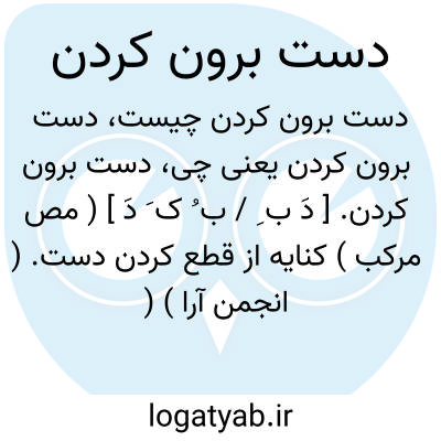 دست برون کردن. [ دَ ب ِ / ب ُ ک َ دَ ] ( مص مرکب ) کنایه از قطع کردن دست. ( انجمن آرا ) ( آنندراج ) ( از شرفنامه منیری ). دست بریدن. ( برهان ):