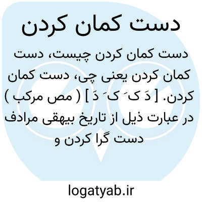 دست کمان کردن. [ دَ ک َ ک َ دَ ] ( مص مرکب ) در عبارت ذیل از تاریخ بیهقی مرادف دست گرا کردن و درآویختن و بر سبیل آزمایش جنگیدن معنی دهد: گفته بودند به بیابان بروید بتعجیل تا در بیابان بباشیم و یک دست کمانی بکنیم که این پادشاه از لونی دیگر آمده است. ( تاریخ بیهقی چ ادیب ص 618 و چ فیاض ص 605 ).