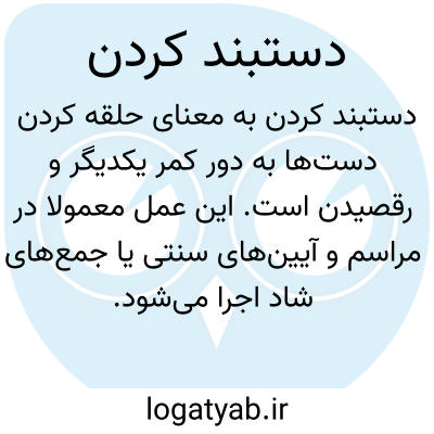 دستبند کردن به معنای حلقه کردن دستها به دور کمر یکدیگر و رقصیدن است. این عمل معمولاً در مراسم و آیینهای سنتی یا جمعهای شاد اجرا میشود و به شکل حلقه گروهی یا زوجی انجام میشود تا هماهنگی و همبستگی میان شرکتکنندگان نشان داده شود. این نوع دستبند کردن جنبه نمادین و هنری دارد و بیشتر با شادی، موسیقی و هماهنگی حرکتی همراه است.