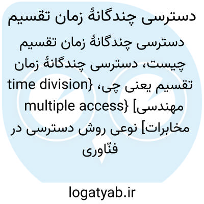 {time division multiple access} [مهندسی مخابرات] نوعی روش دسترسی در فنّاوری همتافگر که در سامانه های رقمی بی سیم به کار می رود و در آن هریک از مسیرهای بسامد به چند شیار زمانی (time slot ) تقسیم می شود که هرکدام یک مکالمه را پشتیبانی می کند اختـ. زمان تقسیم TDMA
