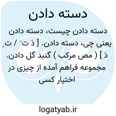دسته دادن. [ دَ ت َ / ت ِ دَ ] ( مص مرکب ) گنبد گل دادن. مجموعه فراهم آمده از چیزی در اختیار کسی گذاردن چنانکه مجموعه ای از گلها یا ریاحین و غیره: