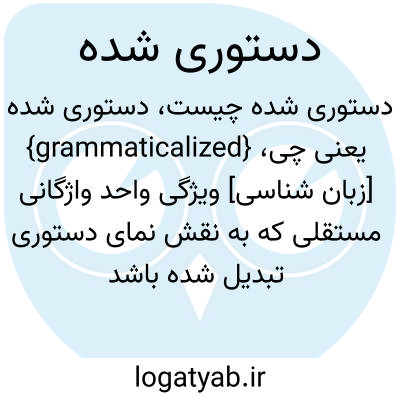{grammaticalized} [زبان شناسی] ویژگی واحد واژگانی مستقلی که به نقش نمای دستوری تبدیل شده باشد