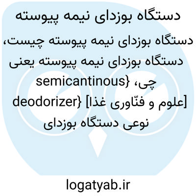 {semicantinous deodorizer} [علوم و فنّاوری غذا] نوعی دستگاه بوزدای ناپیوسته با ظرفیت بیشتر از حد معمول و قابلیت بازیافت مناسب تر حرارت