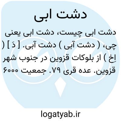 ( دشت آبی ) دشت آبی. [ دَ ] ( اِخ ) از بلوکات قزوین در جنوب شهر قزوین. عده قری 79. جمعیت 6000 تن. ( از جغرافیای سیاسی کیهان ). دشتبی. دستبی. و رجوع به دشتبی شود.