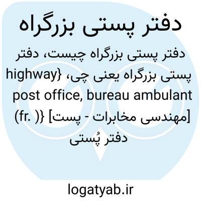 {highway post office, bureau ambulant (fr. )} [مهندسی مخابرات - پست] دفتر پُستی مستقر در وسایل نقلیۀ جاده ای در یک مسیر که عملیات تجزیه و آماده سازی و ارسال و برداشت پُستی مرسولات سپرده شده به پُست در آنجا انجام می شود و در طول مسیر، کار تحویل و دریافت فرسته ها و مرسولات پُستی را در نقاط تعیین ش...