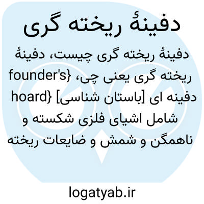 {founder's hoard} [باستان شناسی] دفینه ای شامل اشیای فلزی شکسته و ناهمگن و شمش و ضایعات ریخته گری و گاه اشیای کامل، همراه با ابزار ریخته گری مانند قالب و پتک و انبر و سندان