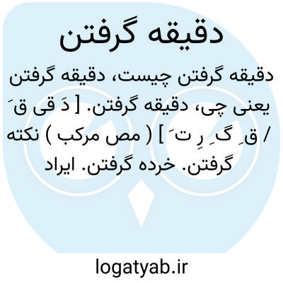 دقیقه گرفتن. [ دَ قی ق َ / ق ِ گ ِ رِ ت َ ] ( مص مرکب ) نکته گرفتن. خرده گرفتن. ایراد گرفتن. انتقاد: اگر خواهی دقیقه بر تو نگیرند پیش از وقوع موعظه خود را از دوستان خود مپرس. ( مجالس سعدی ص 23 ).