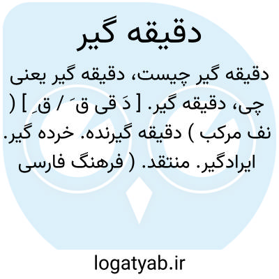 دقیقه گیر. [ دَ قی ق َ / ق ِ ] ( نف مرکب ) دقیقه گیرنده. خرده گیر. ایرادگیر. منتقد. ( فرهنگ فارسی معین ).