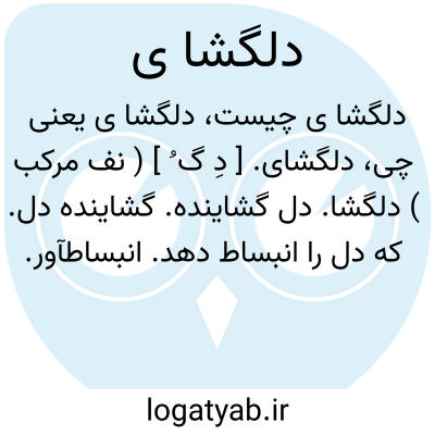 ( دلگشا ی ) ( صفت ) ۱ - آنچه موجب انبساط و شادی گردد مانند: آواز چهره معشوق و زیبا. ۳ - ( تصوف ) صفت فیاضیت را گویند در مقام انس در دل سالک. ۴ - ( تصوف ) صفت فتاحی.