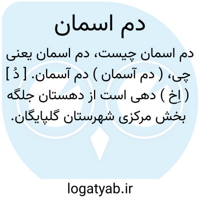 ( دم آسمان ) دم آسمان. [ دُ ] ( اِخ ) دهی است از دهستان جلگه بخش مرکزی شهرستان گلپایگان. سکنه آن 141 تن. آب از قنات و چاه. ( از فرهنگ جغرافیایی ایران ج 6 ).