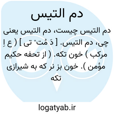دم التیس. [ دَ مُت ْ تی ] ( ع اِ مرکب ) خون تکه. ( از تحفه حکیم مؤمن ). خون بز نر که به شیرازی تکه خوانند. ( از اختیارات بدیعی ).
