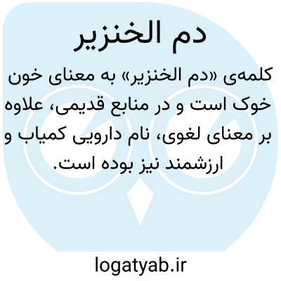 کلمه‌ی «دم الخنزیر» به معنای خون خوک است و در منابع قدیمی، علاوه بر معنای لغوی، نام دارویی کمیاب و ارزشمند نیز بوده است. این ماده در گذشته در خزانه‌های پادشاهان و اشراف نگهداری می‌شد و به دلیل کمیابی و ارزش دارویی، بسیار مورد توجه قرار داشت. خون خوک یا دم الخنزیر در متون طب سنتی و داروسازی قدیم به عنوان ماده‌ای نادر با خواص خاص یاد شده است. این اصطلاح نشان می‌دهد که برخی مواد طبیعی، علاوه بر کاربرد پزشکی، به دلیل کمیابی و ارزششان در اختیار طبقات خاص جامعه قرار می‌گرفتند. واژه «دم الخنزیر» همچنین در ادبیات و متون تاریخی گاهی به صورت نماد کمیابی و ارزشمند بودن به کار رفته است. به طور خلاصه، «دم الخنزیر» یعنی خون خوک که هم به عنوان ماده دارویی کمیاب و گران‌بها شناخته می‌شده و هم در خزانه‌های شاهان نگهداری می‌شده است.