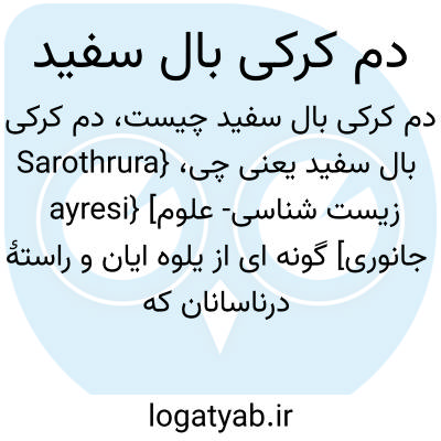 {Sarothrura ayresi} [زیست شناسی- علوم جانوری] گونه ای از یلوه ایان و راستۀ درناسانان که پرهای خال دار حنایی و قهوه ای و پرهای پروازی کاملاً سفید و متمایز دارد
