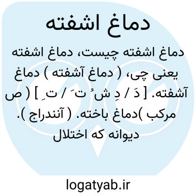 ( دماغ آشفته ) دماغ آشفته. [ دَ / دِ ش ُ ت َ / ت ِ ] ( ص مرکب )دماغ باخته. ( آنندراج ). دیوانه که اختلال حواس دارد. که مَشاعر آشفته دارد. ( یادداشت مؤلف ):
