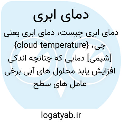 {cloud temperature} [شیمی] دمایی که چنانچه اندکی افزایش یابد محلول های آبی برخی عامل های سطح فعال غیریونی در آن ناهمگن می شوند و به دو فاز مایع مختلف تقسیم می شوند