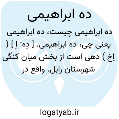 ده ابراهیمی. [ دِه ْ اِ ] ( اِخ ) دهی است از بخش میان کنگی شهرستان زابل. واقع در 5هزارگزی جنوب باختری ده دوست محمد. سکنه آن 118 تن می باشد. آب آن از رودخانه هیرمند است. ( از فرهنگ جغرافیایی ایران ج 8 ).