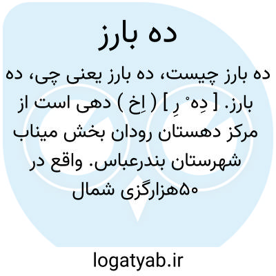 ده بارز. [ دِه ْ رِ ] ( اِخ ) دهی است از مرکز دهستان رودان بخش میناب شهرستان بندرعباس. واقع در 50هزارگزی شمال میناب. سکنه 2000 تن می باشد. آب آن از رودخانه وراه آن فرعی است. ( از فرهنگ جغرافیایی ایران ج 8 ).