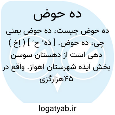 ده حوض. [ دَه ْ ح َ ] ( اِخ ) دهی است از دهستان سوسن بخش ایذه شهرستان اهواز. واقع در 45هزارگزی شمال خاوری ایذه دارای 770 سکنه است. آب آن از چشمه تأمین می شود. ( از فرهنگ جغرافیایی ایران ج 6 ).