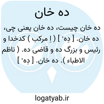 ده خان. [ دِه ْ ] ( اِ مرکب ) کدخدا و رئیس و بزرگ ده و قاضی ده. ( ناظم الاطباء ).