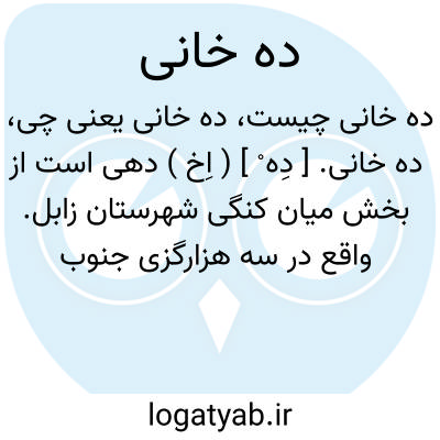 ده خانی. [ دِه ْ ] ( اِخ ) دهی است از بخش میان کنگی شهرستان زابل. واقع در سه هزارگزی جنوب باختری ده دوست محمد. سکنه آن 750 تن. آب آن از رودخانه هیرمند تأمین می شود. ( از فرهنگ جغرافیایی ایران ج 8 ).
