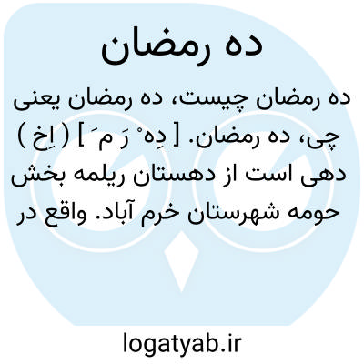 ده رمضان. [ دِه ْ رَ م َ ] ( اِخ ) دهی است از دهستان ریلمه بخش حومه شهرستان خرم آباد. واقع در 12هزارگزی باختر خرم آباد. دارای 240 تن سکنه است. آب آن از چشمه ها تأمین می شود. ساکنین از طایفه حسنوندند و زمستان قشلاق می روند. ( از فرهنگ جغرافیایی ایران ج 6 ).