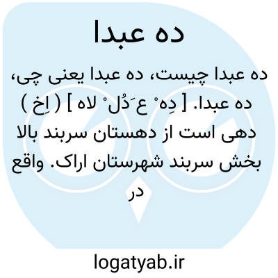 ده عبدا. [ دِه ْ ع َدُل ْ لاه ] ( اِخ ) دهی است از دهستان سربند بالا بخش سربند شهرستان اراک. واقع در 36هزارگزی جنوب باختری آستانه. دارای 289 تن سکنه می باشد. آب آن از چشمه و قنات تأمین می شود. ( از فرهنگ جغرافیایی ایران ج 2 ).