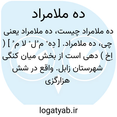ده ملامراد. [ دِه ْ م ُل ْ لا م ُ ] ( اِخ ) دهی است از بخش میان کنگی شهرستان زابل. واقع در شش هزارگزی جنوب باختری ده دوست محمد. سکنه آن 100 تن. آب آن از رودخانه هیرمند تأمین می شود. ( از فرهنگ جغرافیایی ایران ج 8 ).
