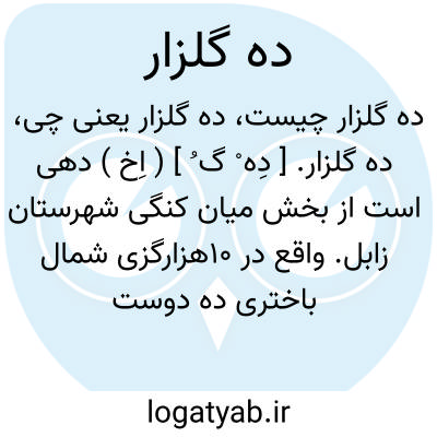 ده گلزار. [ دِه ْ گ ُ ] ( اِخ ) دهی است از بخش میان کنگی شهرستان زابل. واقع در 10هزارگزی شمال باختری ده دوست محمد. سکنه آن 165 تن. آب آن از رودخانه هیرمند تأمین می شود. ( از فرهنگ جغرافیایی ایران ج 8 ).
