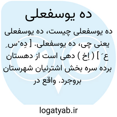 ده یوسفعلی. [ دِه ْس ِ ع َ ] ( اِخ ) دهی است از دهستان برده سره بخش اشترنیان شهرستان بروجرد. واقع در 7هزارگزی شمال اشترنیان با 653 تن سکنه. ( از فرهنگ جغرافیایی ایران ج 6 ).