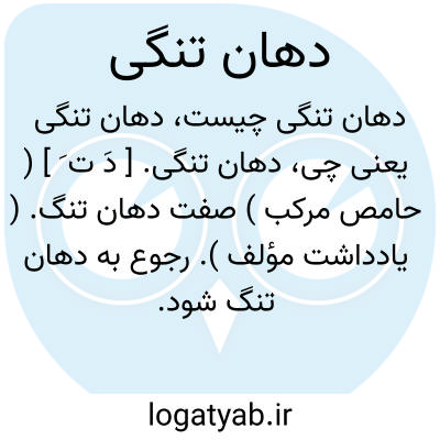دهان تنگی. [ دَ ت َ ] ( حامص مرکب ) صفت دهان تنگ. ( یادداشت مؤلف ). رجوع به دهان تنگ شود.