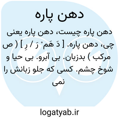 دهن پاره. [ دَ هَم ْ رَ / رِ ] ( ص مرکب ) بدزبان. بی آبرو. بی حیا و شوخ چشم. کسی که جلو زبانش را نمی تواند بگیرد. ( فرهنگ لغات عامیانه ).