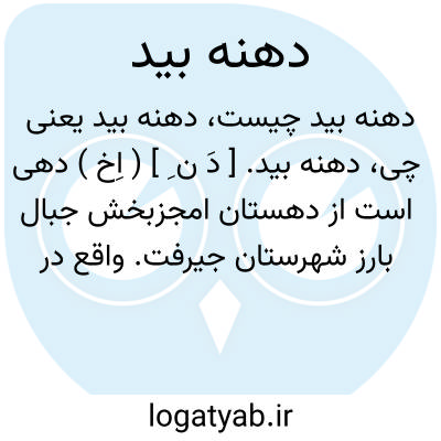 دهنه بید. [ دَ ن ِ ] ( اِخ ) دهی است از دهستان امجزبخش جبال بارز شهرستان جیرفت. واقع در 75هزارگزی جنوب خاوری مسکون با 250 تن سکنه. آب آن از چشمه تأمین می شود. مزارع مکان گرگان، کنار زاغان، لب گت، سرخون جزء این ده است. ( از فرهنگ جغرافیایی ایران ج 8 ).