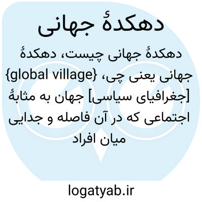 {global village} [جغرافیای سیاسی] جهان به مثابۀ اجتماعی که در آن فاصله و جدایی میان افراد و جوامع مختلف، به سبب پیشرفت های عظیم در حوزۀ ارتباطات و نیز سرعت چشمگیر انتقال اطلاعات، به شدت کاهش یافته است