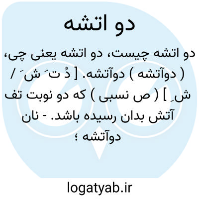 ( دو آتشه ) ( صفت ) ۱ - آنچه که دو بار روی آتش گرم و پخته شده باشد لواش دو آتشه. ۲ - آنچه که دو بار تقطیر شده باشد عرق دو آتشه. ۳ - بسیار حاد تند و تیز سخت پر حرارت: [[ از طرفداران دو آتشه او بود ]].
