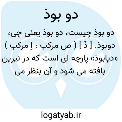 دوبوذ. [ دُ ] ( ص مرکب، اِ مرکب ) «دیابوذ» پارچه ای است که در نیرین بافته می شود و آن بنظر می رسد جمع «دیبوذ» بر وزن فیعول باشد. ابوعبید گفته است: اصل آن در فارسی دوبوذ است. ( از المعرب جوالیقی ص 139 ). دوبود. دوپود.