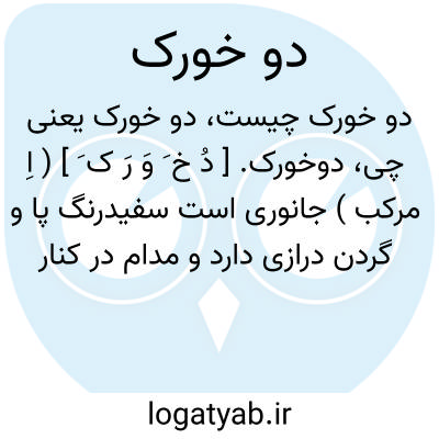 دوخورک. [ دُ خ َ وَ رَ ک َ ] ( اِ مرکب ) جانوری است سفیدرنگ پا و گردن درازی دارد و مدام در کنار آبها می ماند. ( لغت محلی شوشترنسخه خطی کتابخانه مؤلف ). ظاهراً دگرگون شده غمخورک است که مالک الحزین و بوتیمار باشد و از مرغان آبی است.