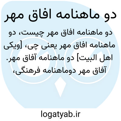 [ویکی اهل البیت] دو ماهنامه آفاق مهر. آفاق مهر دوماهنامه فرهنگی، اجتماعی مجتمع آموزش عالی امام خمینی است. مدیر مسئول این نشریه سید سجاد هاشمیان و سردبیر آن علی الله اکبری است. این دو ماهنامه از بهار 1382 آغاز به انتشار نموده است. این نشریه به فارسی و عربی و گاه به انگلیسی و یا زبان های دیگر منتشر می شود.