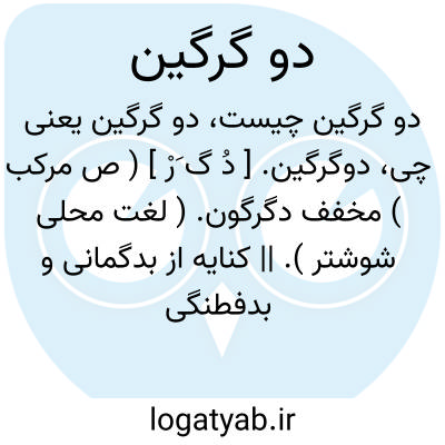 دوگرگین. [ دُ گ َرْ ] ( ص مرکب ) مخفف دگرگون. ( لغت محلی شوشتر ). || کنایه از بدگمانی و بدفطنگی است. ( لغت محلی شوشتر ).