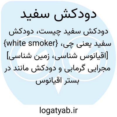 {white smoker} [اقیانوس شناسی، زمین شناسی] مجرایی گرمابی و دودکش مانند در بستر اقیانوس ها که آب گرم سفیدی با دمای 30 تا 350 درجۀ سلسیوس از آن بیرون می آید