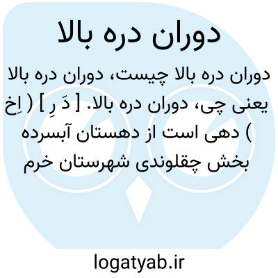 دوران دره بالا. [ دَ رِ ] ( اِخ ) دهی است از دهستان آبسرده بخش چقلوندی شهرستان خرم آباد. دارای 240 تن سکنه. آب آن از چشمه ها. راه آن اتومبیل رو می باشد. ( از فرهنگ جغرافیایی ایران ج 6 ).