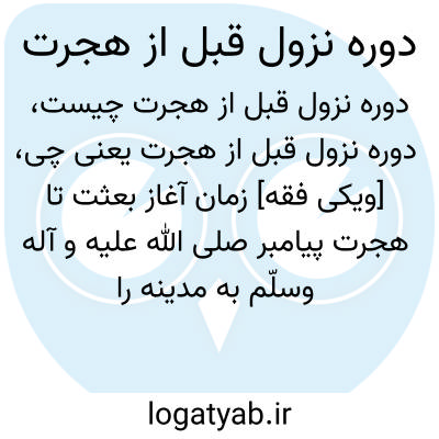 [ویکی فقه] زمان آغاز بعثت تا هجرت پیامبر صلی الله علیه و آله وسلّم به مدینه را دوره نزول قبل از هجرت می گویند.