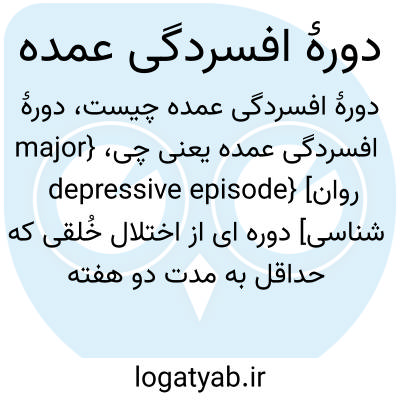 {major depressive episode} [روان شناسی] دوره ای از اختلال خُلقی که حداقل به مدت دو هفته ادامه دارد و دست کم دارای چهار علامت از علائمی چون کاهش یا افزایش اشتها، بی خوابی، پرخوابی، خستگی و کندی روانی حرکتی و سراسیمگی است
