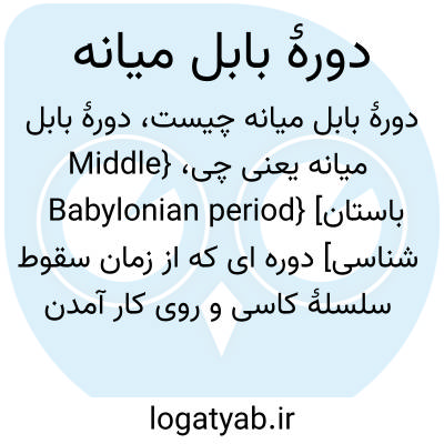 {Middle Babylonian period} [باستان شناسی] دوره ای که از زمان سقوط سلسلۀ کاسی و روی کار آمدن سلسلۀ دوم ایسین تحت فرمانروایی نَبوکدنَصَر اول از 1126 تا 1104 ق.م شروع می شود و تا قدرت یافتن کلدانیان در حدود 800 ق.م ادامه می یابد