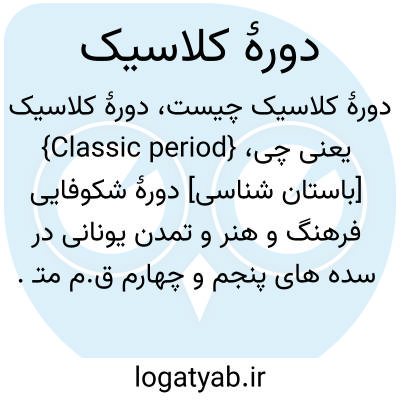 {Classic period} [باستان شناسی] دورۀ شکوفایی فرهنگ و هنر و تمدن یونانی در سده های پنجم و چهارم ق.م متـ. عصر کلاسیک Classical Age