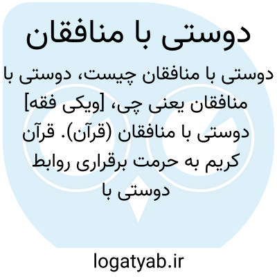 [ویکی فقه] دوستی با منافقان (قرآن). قرآن کریم به حرمت برقراری روابط دوستی با منافقان و پذیرش ولایت و حکومت آنان حکم می کند.