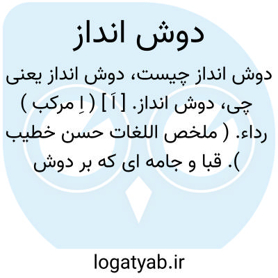 دوش انداز. [ اَ ] ( اِ مرکب ) رداء. ( ملخص اللغات حسن خطیب ). قبا و جامه ای که بر دوش اندازند. جامه که بر دوکتف افکنند چنانکه شنل و عبا و جز آن.